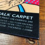 For lengths over 3 metres, a tolerance of ±15mm applies. When printed in multiple panels, joins may not align perfectly. As with all carpet printing, the surface is never as smooth as paper or vinyl, and minor imperfections in the print may occasionally occur.