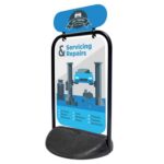 • Double-Sided Visibility: Features a large 500mm x 750mm gloss white aluminium panel, providing ample space for vibrant, custom-printed graphics on both sides.